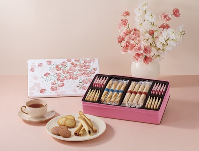 ヨックモック人気のシガール2種と、春限定のはちみつとアーモンドのサブレと、いちごのサブレのお詰合せです。スイートピー柄の春らしいパッケージでご用意いたしました。
