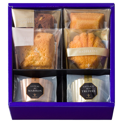 「トリュフケーキ」や「ガトー・オ・マロン」をはじめ、ブールミッシュ定番焼菓子のセットです。