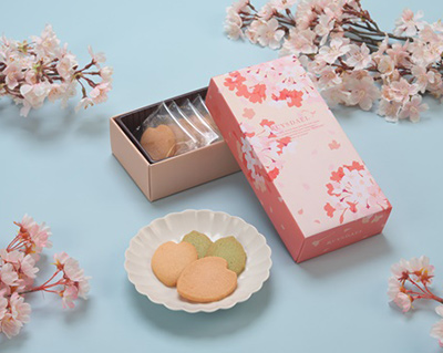 桜の花びらの粉末を練り込んだクッキーと、桜の葉の粉末を練り込んだクッキーの詰合せです。