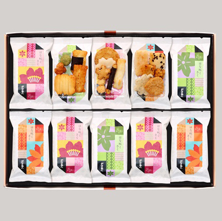 日本の美、四季のうつろいを表現したおかき・お煎餅を3種類の小袋に詰合せました。