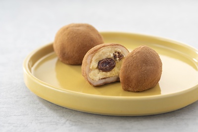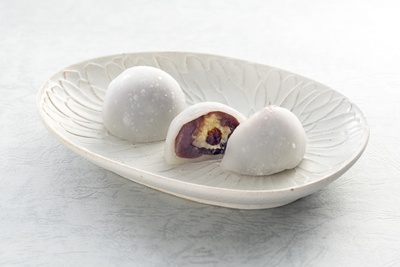 ラム酒に漬け込んだレーズンに、クリームチーズとバターを合わせやわらかな求肥で包みました。コクのある味わいと芳醇なラムの香りが広がる大人の大福です。
