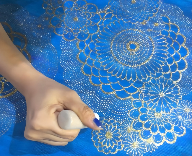 東京都生まれ。日本の伝統的な花文様をルーツに、「幸せが花開く花文様」をテーマとした手描き作品を制作する花文様アーティストRieco。
