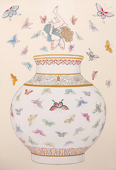 一見すると甘くポップな雰囲気をまといつつ、広がりある絵画空間にある種の不穏さまでも漂わせる奥深さ、永島氏の独自の世界観を、どうぞこの機会にご高覧ください。