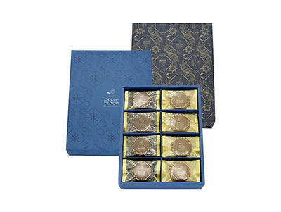 クリーミーなホワイトチョコレートをサンドしたココアの深い味わいのクッキーとアールグレイの香り豊かなクッキー2種類のお味をお楽しみいただけます。