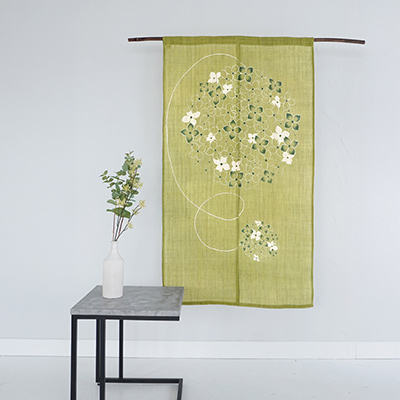 手染めで仕上げた麻のれんは、和洋問わず空間をモダンに演出します。