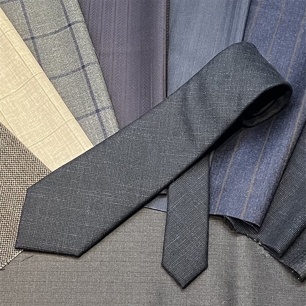 スーツ生地の残布を再利用したネクタイです。スーツ生地を活用することで、スーツとの親和性も高くスタイリングも決まりやすくなります。