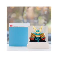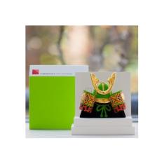 日本の最も優美な時代とされている南北朝・室町時代の代表的な筋兜(すじかぶと)のスタイル。堂々とした鍬形(くわがた)は身分の高い侍の兜を彷彿(ほうふつ)させます。絵革(模様を染めつけて随所に張られた革)の部分も見事に再現しました。高貴さの象徴である獅子のほか、リヤドロのモチーフによく見られる鳥や花ばなのデザインも施されており、日本文化とリヤドロの融合が感じられる作品です。磁器製ですので、経年劣化もほとんどなく、永くお楽しみいただけます。