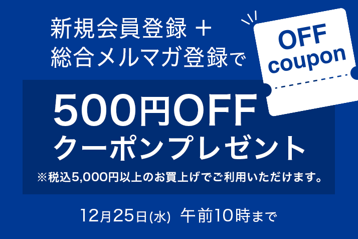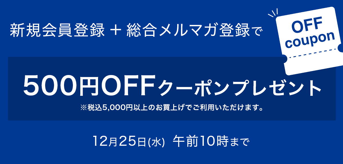 ※500円OFFクーポンは新規会員登録完了と同時にクーポンをプレゼントいたします。