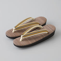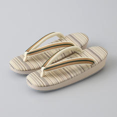 いつも安心して心地よくお履きいただける履物づくりを追求する、「創作京履物 伊と忠」。草履の台には、今では希少となったホースヘアを使用。花緒はおしゃれな真田紐で挿げました。手縫い仕上げでしなりがかかり、履き心地が良い商品です。