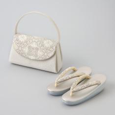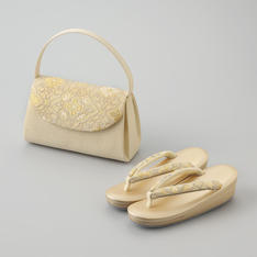 いつも安心して心地よくお履きいただける履物づくりを追求する、「創作京履物 伊と忠」。立体感のあるモール織は、角度によって柄が浮き上がって見えることから、華やかな場にふさわしい装いを演出します。同じ柄の花緒を挿げた草履とセットで。高島屋限定商品です。