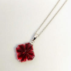 華やかな中にも深みのある赤が美しいルビー。きれいなペアシェイプにカットした良質のルビーをシンプルなプラチナ製ペンダントに仕立てました。真っ赤なルビーのドロップ型が胸もとに映えるペンダントです。7月の誕生石です。