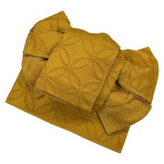 中国 蜀の時代につくられたと言われる、四角形や八角形を直線でつなぎ四方へと広がるように構成された蜀紅文様を金糸経を用いて豪華な印象の袋帯に仕上げました。合わせるきものは、振袖や留袖、訪問着など。お祝い事など華やかなシーンにおすすめです。