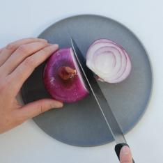 フルーツやパンやおつまみなどを、ちょっと切りたい。テーブルの上の料理を、子どもが食べやすいサイズに切り分けたい。そんなシチュエーションに最適な、まな板になるお皿です。お皿として扱いやすく、まな板としても成立するように僅かな曲面をお皿の周辺に施されています。液体が滴れることなく、食材をカットするときにも邪魔にならない最小限の高さ設計です。軽量で高硬度なSPS材を 河辺商会 の技術を活かして成型。叩けばカンカン音がするほどの十分な固さを持ちながら、落としても割れない柔軟さも合わせ持つため、ご家庭での日常使いはもちろん、屋外でのキャンプでもご使用いただけます。食器洗い機での洗浄はもちろん、電子レンジにも対応。まな板としても、お皿としても。日常生活で気兼ねなく使えます。