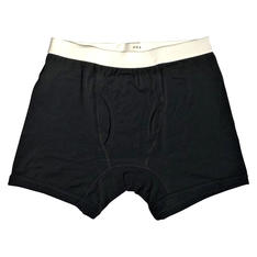 三重県で唯一無二のコットンを手掛けるスマイルコットン社の素材を使用したアンダーウエアやタオルを展開する「HAAG」。「わたの繊維」を撚って作られた糸を一度わざわざほぐして再度糸にすることで、糸を構成する繊維の間に空気が含まれ、ふんわりと柔らかい肌触りと着心地を実現。保温性と吸湿性にも優れ、さらに洗濯しても生地が硬くならず、柔らかい着心地が続きます。浅すぎない程よい股上のレギュラータイプ。ボクサーブリーフはシルエット、フィット感、運動性に注力しミニマムに、そしてウエストゴムのWHITEをアクセントにクリーンな配色に仕上げています。