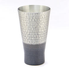 富山県高岡市の伝統産業である「鋳物」の技術をもとに、錫100%を用いて製作しています。冷蔵庫でカップを冷やして冷たいビールをお楽しみください。アイスコーヒーやソフトドリンクにもおすすめです。花器としてお使いいだだくこともできます。ご自宅用にはもちろん、木箱入りなので、大切な方への贈りものにもおすすめです。