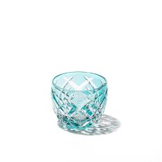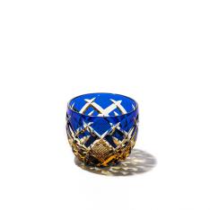 江戸切子 菊繋ぎに籠目紋 クリスタルぐい呑(ルリ)