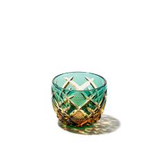 江戸切子 菊繋ぎに籠目紋 クリスタルぐい呑(グリーン)