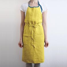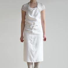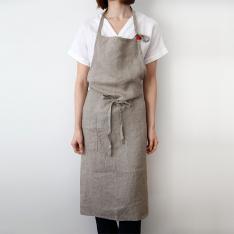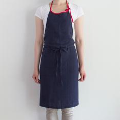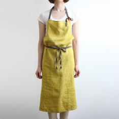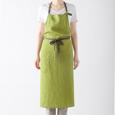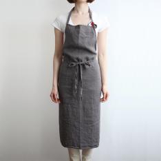 胸から膝下までをすっぽり隠してくれる長め丈で、洋服を汚れからしっかり守ってくれます。男女問わず使いやすい、シンプルで飽きのこないシルエットです。色違いで何枚も揃えたくなる、幅広いカラー展開も魅力の一つです。たっぷり使った生地が後ろで交差し、ヒップを隠してくれるのでスマートな後ろ姿に見えます。腰紐をブラウジングして丈を調整できます。首紐は好みの長さに調整でき、結んだままにしておけば、毎日着けるのも簡単です。大きなポケットは小物の出し入れに便利です。
