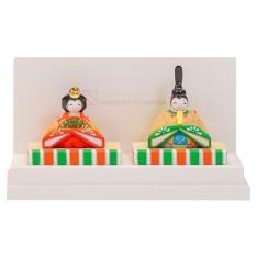 清々しく鮮やかな若草色と、あたたかく柔らかい薄橙色の着物をまとった可愛らしい雛人形。平安時代からある伝統的な若草色は春の訪れを表し、寒さ厳しい冬を乗り越え今まさに芽吹こうとする新芽のような力強さを感じさせます。