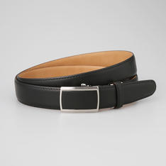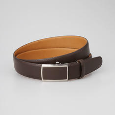 定番カラーの黒、ダークブラウンの2色を採用し、スタイリッシュな30mm幅の、ビジネスシーンに最適なベルトです。上質な牛革の表面にシボ感を出しているので傷も付きにくくシンプルながらしっかりと革の風合いを感じていただけます。日本製の確かなクオリティーとバックルにさりげなくブランドロゴを配したデザインです。
