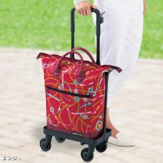 お出かけ時にちょっと休みたい時に椅子替わりになる座面付きです。背面にバッグ付きでお買い物にも便利です。ワンタッチで簡単に折りたためます。簡単に手元で操作できるブレーキと駐車用ブレーキロック付きです。ハンドルはクッション付きで感触も良く、角度も握りやすいように設計されています。3WAYキャスター(固定・左右40度・360度)で様々な路面に対応できます。ステッキ・傘立て付きでお出かけ時に便利です。