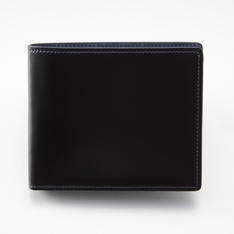 カード段と小銭入れが並ぶオーソドックスなタイプの二つ折り財布。横浜高島屋限定カラーの深いネイビーが魅力。BRIDLE CASUAL(ブライドル カジュアル)シリーズ:イギリスの名門老舗タンナーJ&Eセジュイックの「UKハイド」と呼ばれる貴重なブライドルレザーを外装と内装両面に使用し、ライニングには国産の上質なヌメ革を使用したこだわりの逸品。全体的に丸みを持たせたデザインと白いステッチの組み合わせで大人のカジュアルを表現しています。使い込むほどにブライドルレザーならではの艶が現れ、ご自身だけの経年変化をお楽しみいただけます。