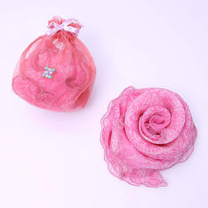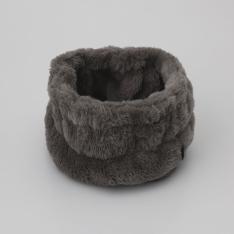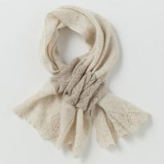 レースのような編地がエレガンスな印象のプチマフラーです。ギャザーが寄ってふんわりとした優しい表情に。差し込むだけでお洒落にドレスアップできます。