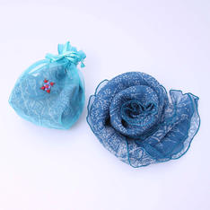 伸縮性あるシルクの楊柳素材を使用し一部を縫い閉じたスクエア型にデザインしています。縁取りの部分も軽やかな印象で、肌ざわりも柔らかく、開きの部分を前や横に使うことで印象が変わります。とても軽い素材で持ち運びにも最適です。