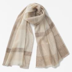 カシミヤ縮絨ガーゼ風ストール。天然素材の無垢な色味は不思議と様々な色と相性が良く、取り入れやすい商品です。肌寒い季節にさらりと羽織れるアイテムとしてご提案いたします。