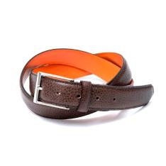 シンプルなデザインで様々なシーンで使えるスタンダードなベルト。本革ベルトなのに伸び縮みする《くつろぎリラックスレザーシリーズ》。国内有数の産地である兵庫県姫路産のスムースレザーを使用。柄のない上質なスムース革のため様々なシーンで活躍するベルトです。帯自体が伸縮するストレッチ構造によってどんな状態でも身体にフィットし続けるため、ズボンがずれ落ちる心配もなく、穴を緩めて締め直す必要もありません。裏革は伸縮性に欠かせない特殊なイタリア製の本革を使用。水分による色移りにも配慮したこの革は、ヨーロッパの有名バックブランドで多く使用されている耐久性の優れた素材です。