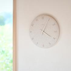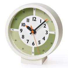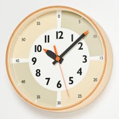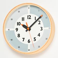 アナログ時計の持つ「円グラフ」の特徴を活かしながら、色を効果的に使い、1時間をおおらかに4分割して捉えることで、子ども自身でスケジュールを管理できるように導いてあげることを意図とした時計です。1コマ=15分の区切りとなる「0分」「15分」「30分」「45分」に白を残す事で、気持ちを一度切り替える、白(地の色)になる心の余裕を促しています。また、インテリアペイントのメーカー・株式会社カラーワークス協力のもと、12種類の顔料をブレンドして 作った同社の繊細な色合い1488色の中から選びぬいた3つの配色です。開発には子育て経験のあるデザイナー土橋陽子氏の母親の視点と、教育の専門家の知見を取り入れました。より環境にやさしい自然素材を用いた木枠のシンプルな壁掛け時計です。