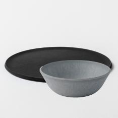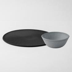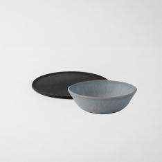 【CHOPLATE】フルーツやパンやおつまみなどを、ちょっと切りたい。テーブルの上の料理を、子どもが食べやすいサイズに切り分けたい。そんなシチュエーションに最適な、まな板になるお皿です。お皿として扱いやすく、まな板としても成立するようにお皿の周辺に僅かな曲面を施しています。食洗機での洗浄はもちろん、電子レンジにも対応。【CHOPLATE KNIFE】パンやフルーツやお野菜はもちろん、お肉もスムーズに切ることができます。 お子さんが手にしたときもできるだけ安全に扱えるよう、刃先は丸く加工しました。刃先が丸いのでパンにバターを塗る際にも使えます。サヤの内部にマグネットが入っているため、刀身をサヤに差し込むと磁力で保持されます。また、サヤはナイフ使用時にナイフレストとして使えるので、机を汚す心配がありません。【CHOPLATE BOWL】スープやサラダを食べやすい、ちょうど良いサイズ。混ぜる、潰すなどの料理の下ごしらえに使ったりも。電子レンジにも食洗機にも冷凍庫にも対応しています。シンプルな色と形なので、朝食も昼食も夕食も、どんな食事にも気軽に使えます。スタッキングもできるので、ご家庭内はもちろんアウトドアシーンでも。SPS樹脂という素材ならではのひとつひとつ異なる模様が、どんな料理も引き立てます。