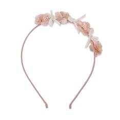 ピンクベージュのワンピースは、上身頃に繊細なレースを施し、スカート部分をプリーツでふんわりと仕上げた優しいラインが魅力です。