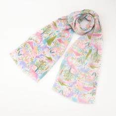 さらりとした手触りのオリジナルプリントの麻ストールです。ポップで可愛らしい色合いの恐竜達が一面にプリントされています。ワンピースにふんわり羽織って冷房避けに、カジュアルスタイルにもアレンジしやすい1枚です。