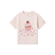 [Fabric]コットン、レーヨン混の肌触りの良いカットソーを使用しました。[Design/Styling]いちごとハートを乗せたキュートなカップケーキ柄がHAPPYな気分を誘う、ファミリーで楽しめるカットソーシリーズです。袖や裾にフリルをあしらったAラインシルエットのBABYTシャツに、カップケーキとブランドロゴを総柄プリント。いちごミルクのような可愛い色合いと、肌触りの良い生地でロングシーズン着用いただける1枚です。同シリーズのショートパンツやギンガムチェック柄のパーカとコーディネートしたり、雑貨と組み合わせてギフトにもおすすめ。BABYアイテムとのリンク・コーディネートもお楽しみいただけます。