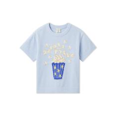 [Fabric]コットン、レーヨン混の肌触りの良いカットソーを使用しました。[Design/Styling]弾けるポップコーン柄がHAPPYなおうち時間を彩る、ファミリーで楽しめるカットソーシリーズです。ポップコーンとブランドロゴの総柄プリントを施した、配色ラグラン袖のKIDSサイズTシャツ。ブルーを効かせた爽やかな色合いと、肌触りの良い生地で夏も着用していただけます。同シリーズのハーフパンツやギンガムチェック柄のパーカとコーディネートしたり、雑貨と組み合わせてギフトにもおすすめ。BABYアイテムとのリンク・コーディネートもお楽しみいただけます。