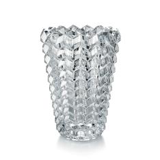 幾何学と視覚のイリュージョンが織りなす新たなリズムがクリスタルの新たな魅力を生み出しました。『アイⅡ』はベースは強い存在感を放つ、まさに現代彫刻のようなオブジェ。水平と垂直に交差するベヴェルカットが連なる面に光を反射させ、まるで万華鏡のように幻想的な輝きを生み出します。見る角度や光の加減によって表情を変えるそのデザインは、植物を活けても、キャンドルを灯しても、あるいはそのまま飾っても、空間に豊かな奥行きと詩的なきらめきをもたらします。それは単なる装飾を超えた、バカラのクリスタルに没入する視覚体験。デザインを手がけたのは、バカラで数々のベストセラーを生み出してきたフランス人デザイナー、ニコラ・トリブロです。