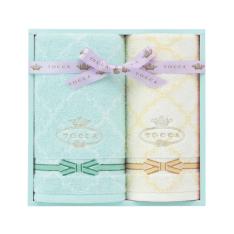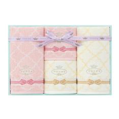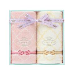 撚りの少ない糸を使用したふんわりやわらかな触感のタオルは、ブライダルや内祝いに好適です。人と人との絆を深く強く結ぶという想いを、リボンモチーフに込めたデザインのタオルセットです。
