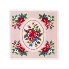 フランスのアンティーク生地から着想を得てデザインしました。柄名は、フランス語の「MADEMOISELLE =お嬢様」と「ROSE=薔薇」から由来しています。赤い薔薇とカラフルな小花をあしらい、ハンカチの中央にはレース配置し、上品なイメージに仕上げました。表裏どちらも美しい発色をお楽しみいただけるシュニール織のハンカチは優しい肌触りで、ちょっとしたギフトにもおすすめです。