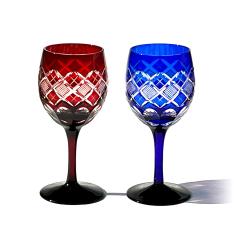 江戸切子 矢来魚子紋 ワイングラスペア
