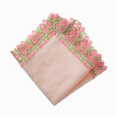 タオル生地は吸水性があり柔らかな肌触り。周りのレースを引き立てるために表面のパイルをカットしたシャーリング加工に。手触りはまるでベルベットのよう。周りは上品なレースをあしらいました。実用性と芸術性を兼ね備えた、女性の心をくすぐる一品。