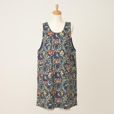 ウィリアムモリスの一番弟子ジョン・ヘンリー・ダールの代表柄「アイリス」をモチーフにした背付きタイプのエプロン。腰ひもを絞ってサイズの調節が可能で、前後の身ごろをカバーしてくれます。