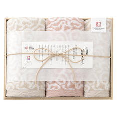 お慶び事に相応しい梅染めされた紅白の今治タオルを、ブランドロゴをあしらった木箱にお詰めした美しいタオルギフトです。上質な今治タオルが心地よい時間とあなたの感謝の気持ちをお届けします。フェイスタオル×2枚、ウォッシュタオル×1枚のセットです。