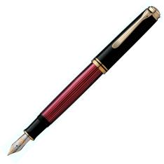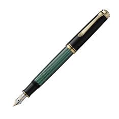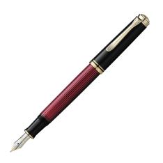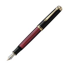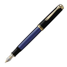 ペリカンの人気万年筆「スーベレーン」です。スーベレーンとはドイツ語で「卓越した」、「優れもの」といった意味を持っています。デザイン最大の特徴であるストライプ模様は2種類の異なる樹脂を交互に張り合わせて出来たブロックを縦にスライスして生み出されます。そのため、色合いや柄が1点ごとに微妙に異なり、1本1本がオリジナルのアイテムと成ります。「スーベレーン800」は、数ある「スーベレーン」の中でも比較的大型のボディサイズのため、安定感の有る握り心地です。本格的な吸入式万年筆ですので、お好みのボトルインクを使用して、筆記を楽しむことが可能です。