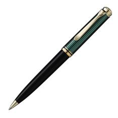 ペリカンの人気モデル「スーベレーン」のボールペンです。スーベレーンとはドイツ語で「卓越した」、「優れもの」といった意味を持っています。デザイン最大の特徴であるストライプ模様は2種類の異なる樹脂を交互に張り合わせて出来たブロックを縦にスライスして生み出されます。そのため、色合いや柄が1点ごとに微妙に異なり、1本1本がオリジナルのアイテムと成ります。「スーベレーン800」は、数ある「スーベレーン」の中でも比較的大型のボディサイズのため、安定感の有る握り心地です。