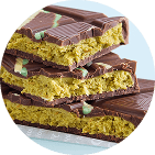 一見、板チョコ。ですが、中にはカダユフという中東麺とピスタチオでできた特製フィリングが入っていて、板チョコのパリッとした食感の後にザクザクの香ばしさが楽しめる人気沸騰中の一品!