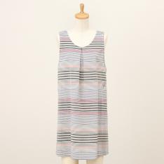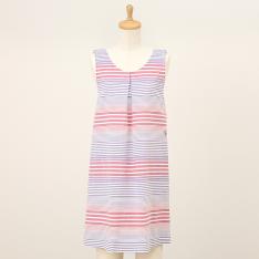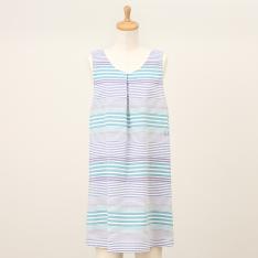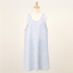 表面に凹凸があり、さらっとした肌触りが特徴のリップル加工素材を使用したエプロン。ゆったりとしたAラインシルエットと涼しげなブルー系カラーを組み合わせたエプロンは暑い季節にも重宝する一枚です。