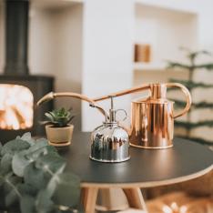 銅製ジョウロ「Metal Indoor Copper」は取り外しができる真鍮製のヘッドがついています。HAWSの特徴でもある絹糸のような細かいシャワーで植物を傷めず水やりをすることができます。ゆるやかな曲線とスタイリッシュなたたずまいがインテリアとしても人気を集めます。置いてあるだけで絵になるおしゃれなフォルムに加え、ずっと眺めていたくなるような魅惑さも合わせもち、じょうろだけでなく、花瓶としてお花やハーブを挿して楽しむのもおすすめです。ミストスプレー「Mist Sprayer」シリーズは室内で育てている観葉植物や多肉植物の水やりに好適。繊細なミストで植物を痛めることなく、最高の状態に仕上げます。植物が大好きなあの人へ、使うのが楽しみになるガーデニングギフトセットを。