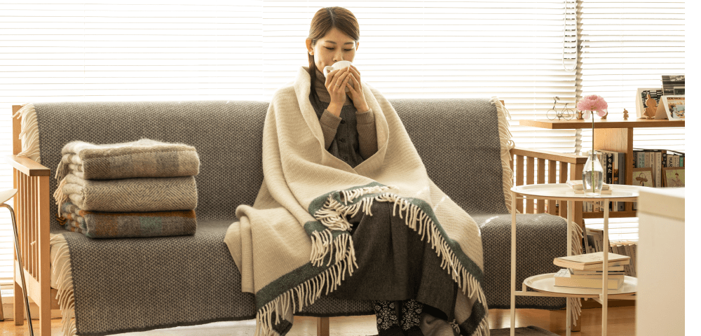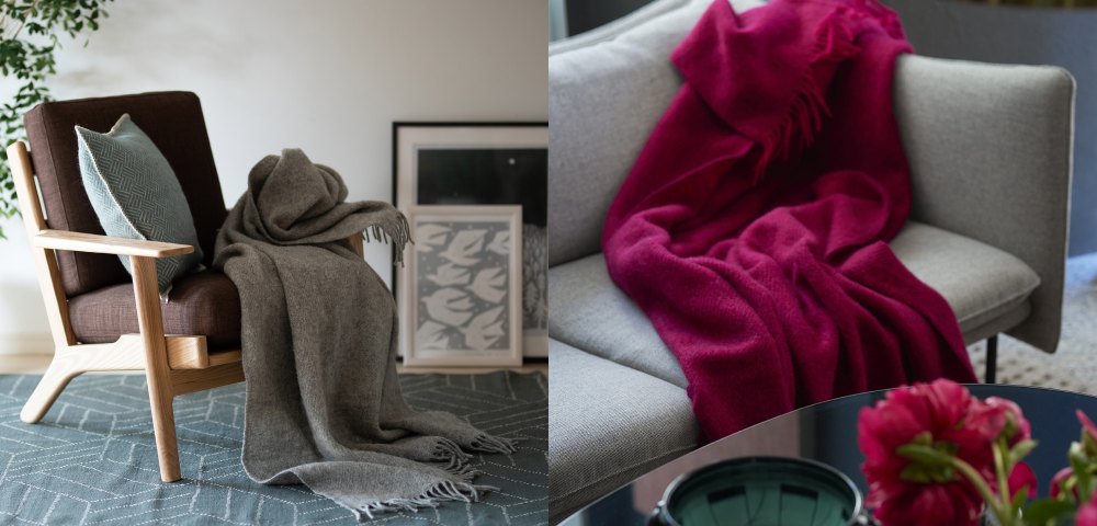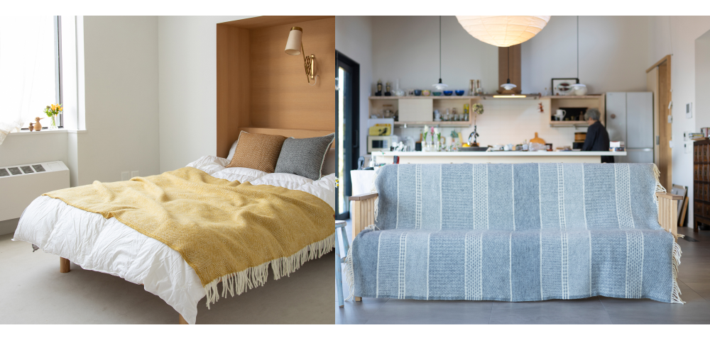 必要な時にいつでも身体や膝にかけてぬくもりをとれるだけでなく、室内の景色を変えるインテリアファブリックとしても活躍します。