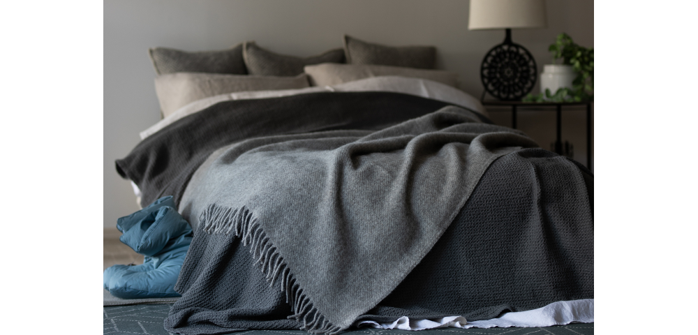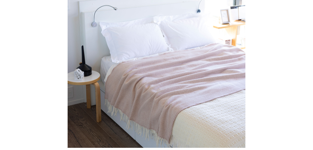 ウールスローは、ウール素材ならではの暖かさとふんわりとした柔らかな肌触りが魅力です。